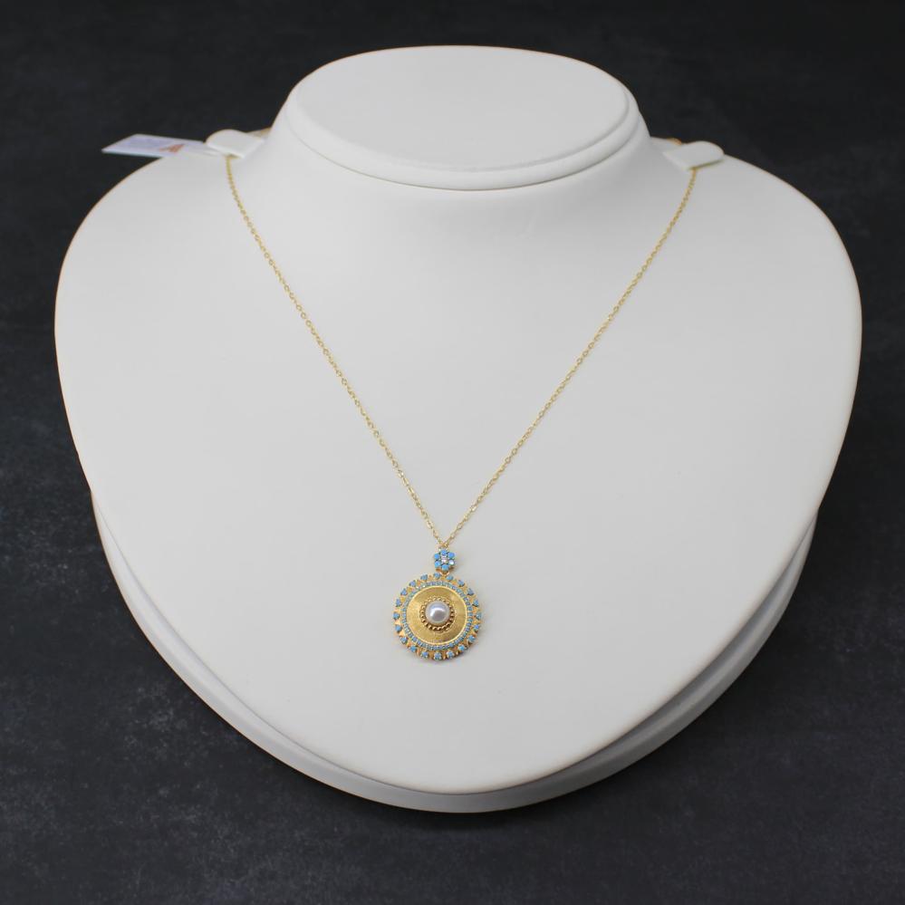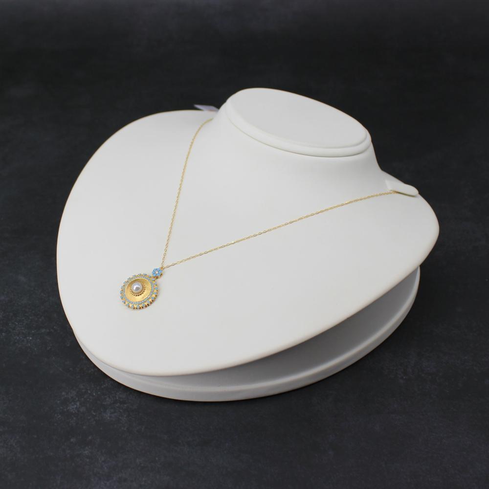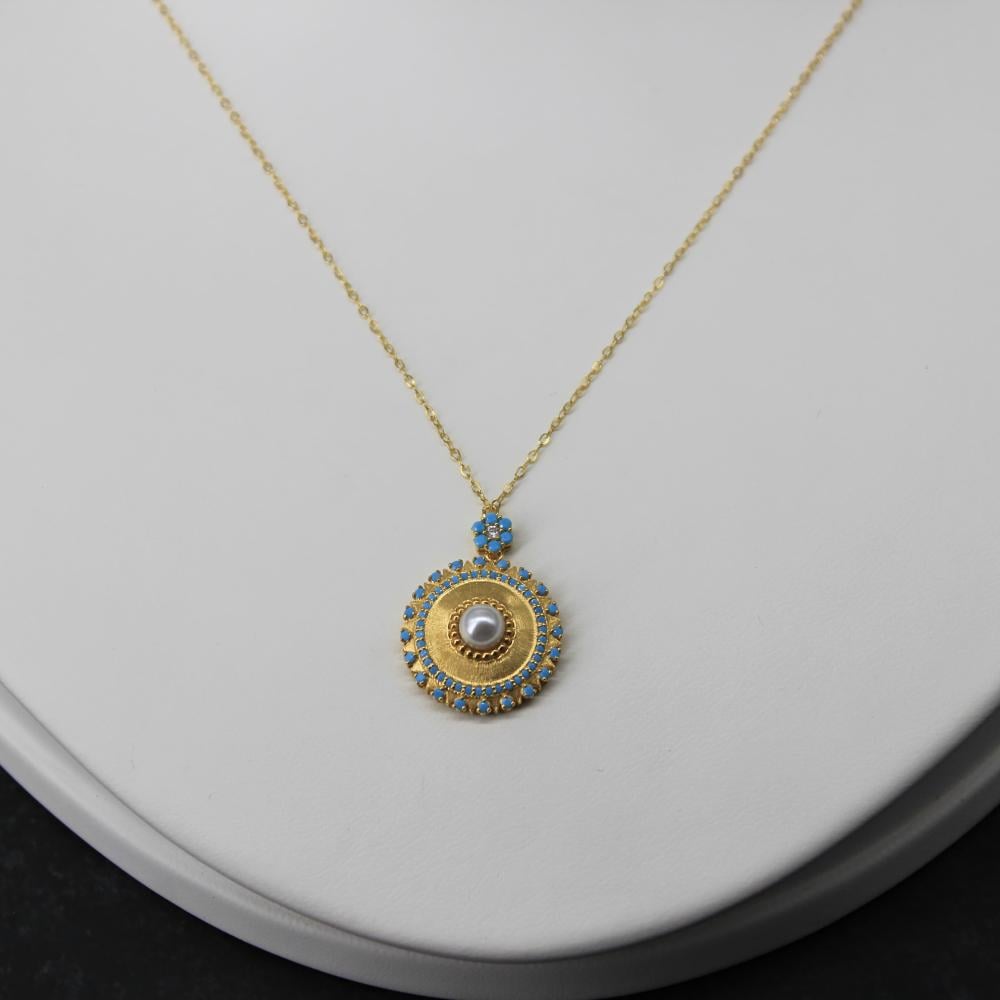 - ألوان راقية دمج بين الفيروزي والأبيض يمنح العقد طابعًا ناعمًا يناسب مختلف الإطلالات والمواسم.